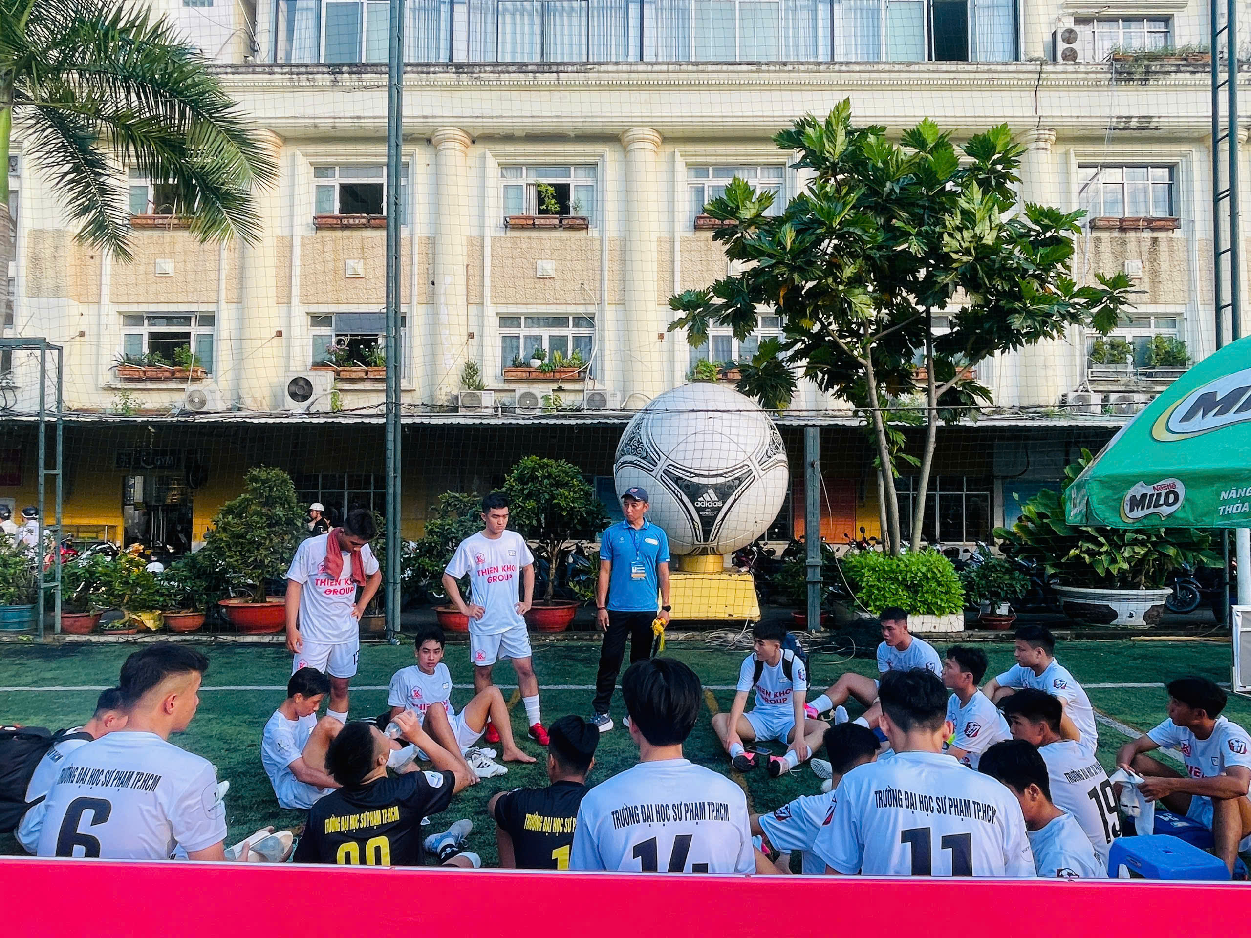 Với tinh thần chiến đấu quả cảm và quyết tâm đến phút cuối, đội bóng Trường Đại học Sư phạm Thành phố Hồ Chí Minh đã khép lại hành trình tại Tứ kết Giải SV7 – THIÊN KHÔI CUP 2025 khu vực Miền Nam sau trận đấu đầy kịch tính với Trường Đại học Tôn Đức Thắng, với tỉ số 3-4