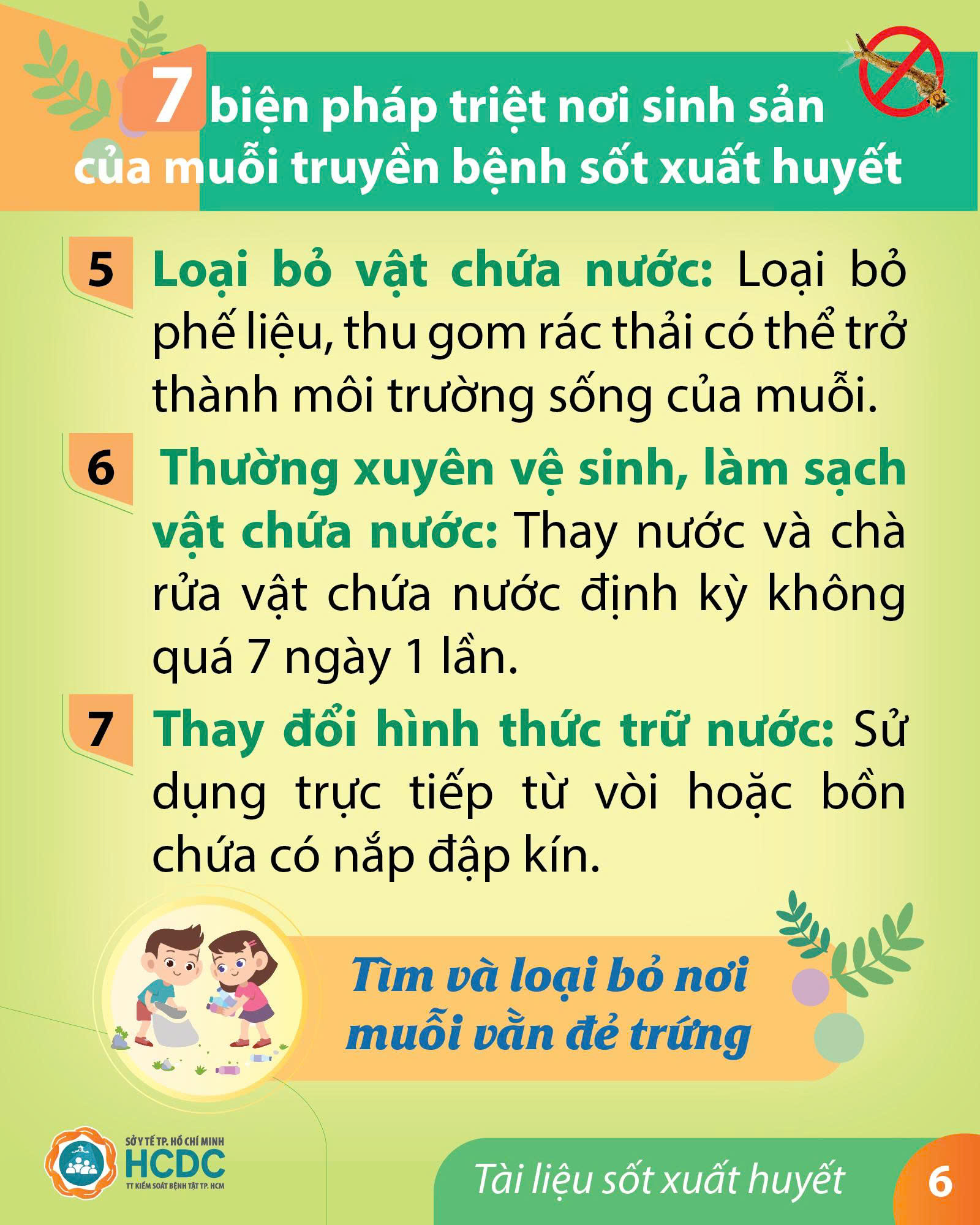 - Diệt lăng quăng, bọ gậy bằng cách thay nước bình hoa, chậu cảnh ít nhất mỗi tuần một lần.