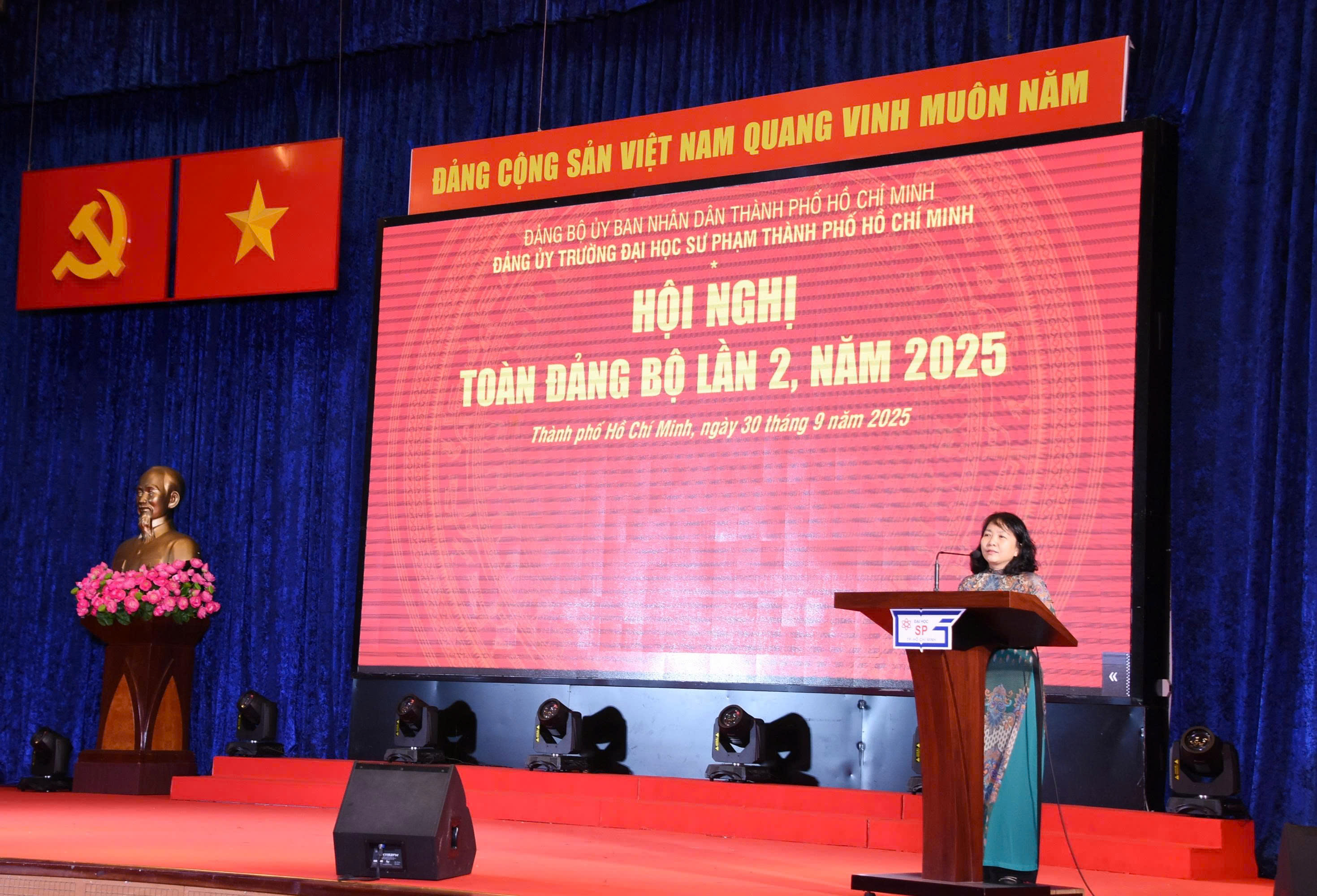 Chiều ngày 30/9/2025, Đảng ủy Trường Đại học Sư phạm Thành phố Hồ Chí Minh đã tổ chức hội nghị toàn Đảng bộ nhằm sơ kết công tác 9 tháng đầu năm 2025, đánh giá kết quả thực hiện các nhiệm vụ trọng tâm và triển khai phương hướng, giải pháp cho những tháng cuối năm.