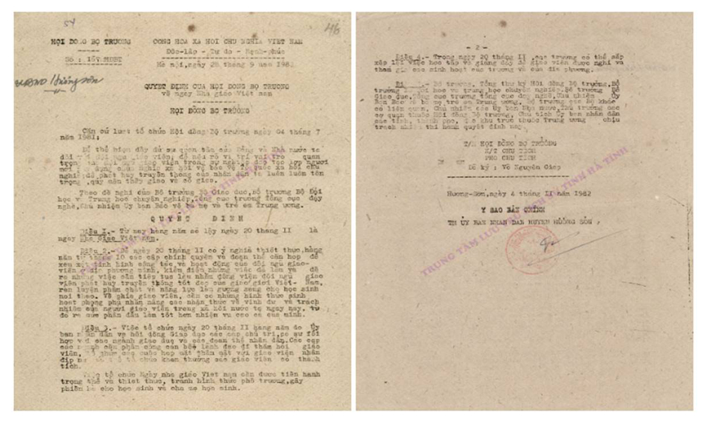 Quyết định số 167/HĐBT, ngày 26/9/1982 quyết định lấy ngày 20/11 hàng năm là Ngày Nhà giáo Việt Nam.
