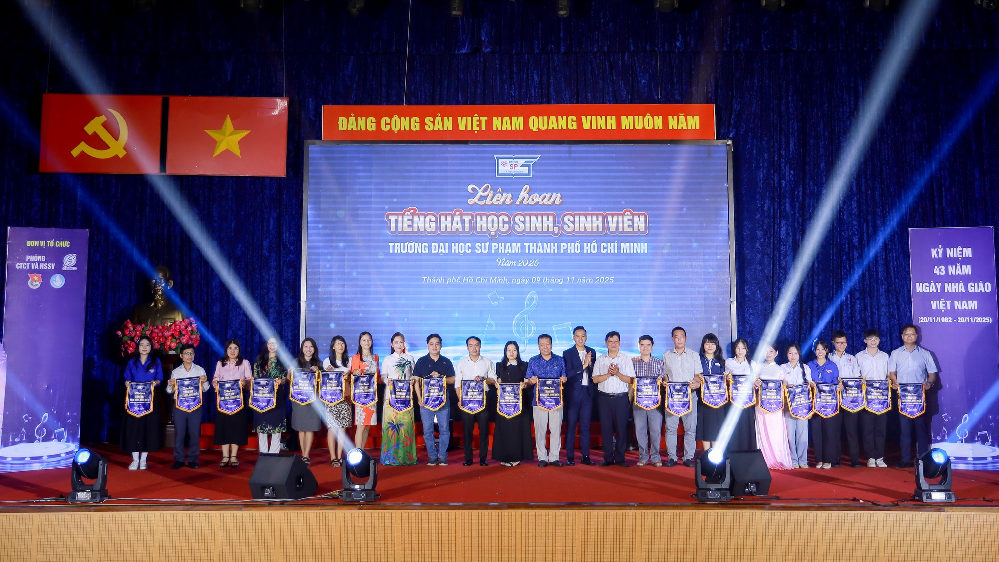 Với truyền thống gần 50 năm xây dựng và phát triển, Trường Đại học Sư phạm Thành phố Hồ Chí Minh luôn xem Ngày Nhà giáo Việt Nam 20/11 là một trong những sự kiện ý nghĩa nhất trong năm. Đây là dịp để Nhà trường tri ân đội ngũ giảng viên, viên chức và những người đã cống hiến cho sự nghiệp giáo dục; đồng thời lan tỏa niềm tự hào nghề giáo đến sinh viên – những người sẽ tiếp nối sứ mệnh trồng người trong tương lai.
