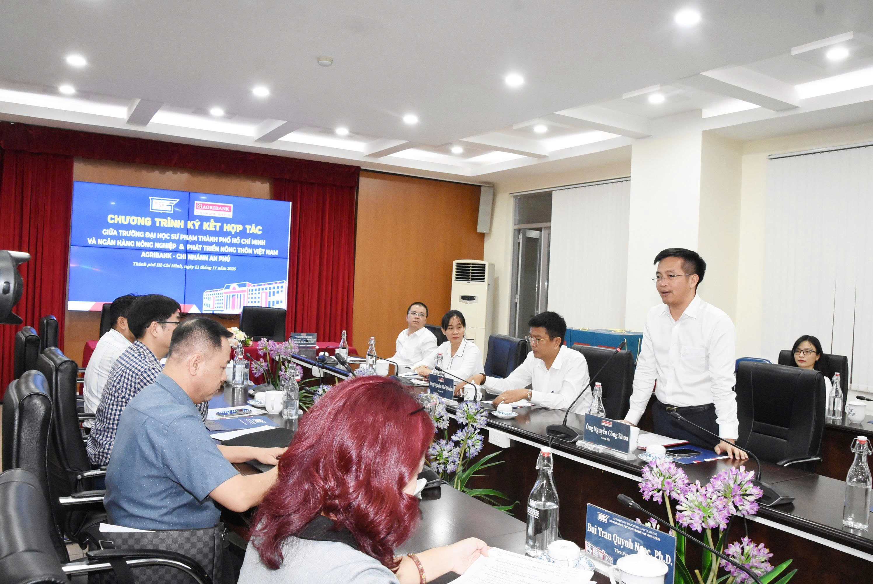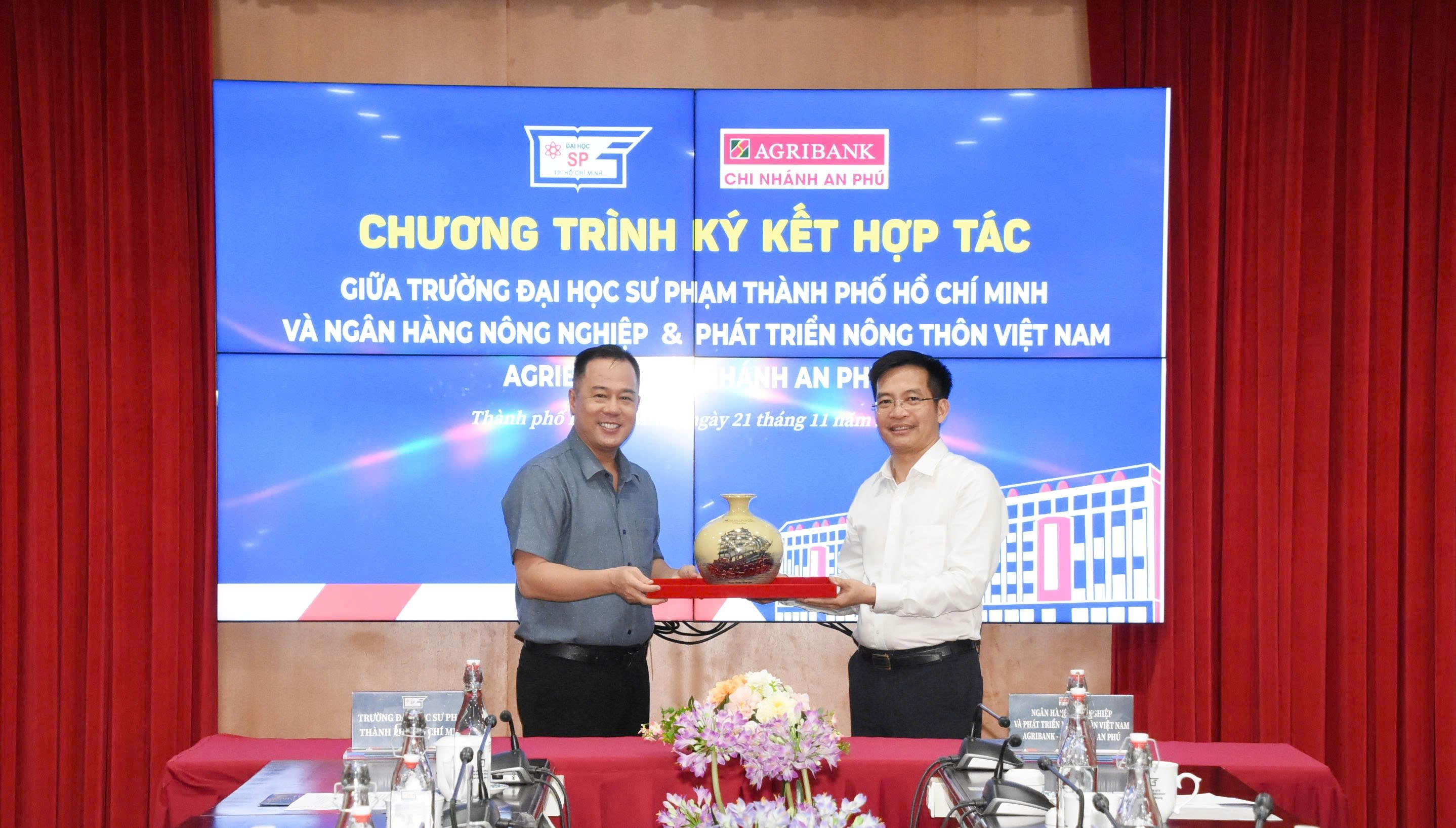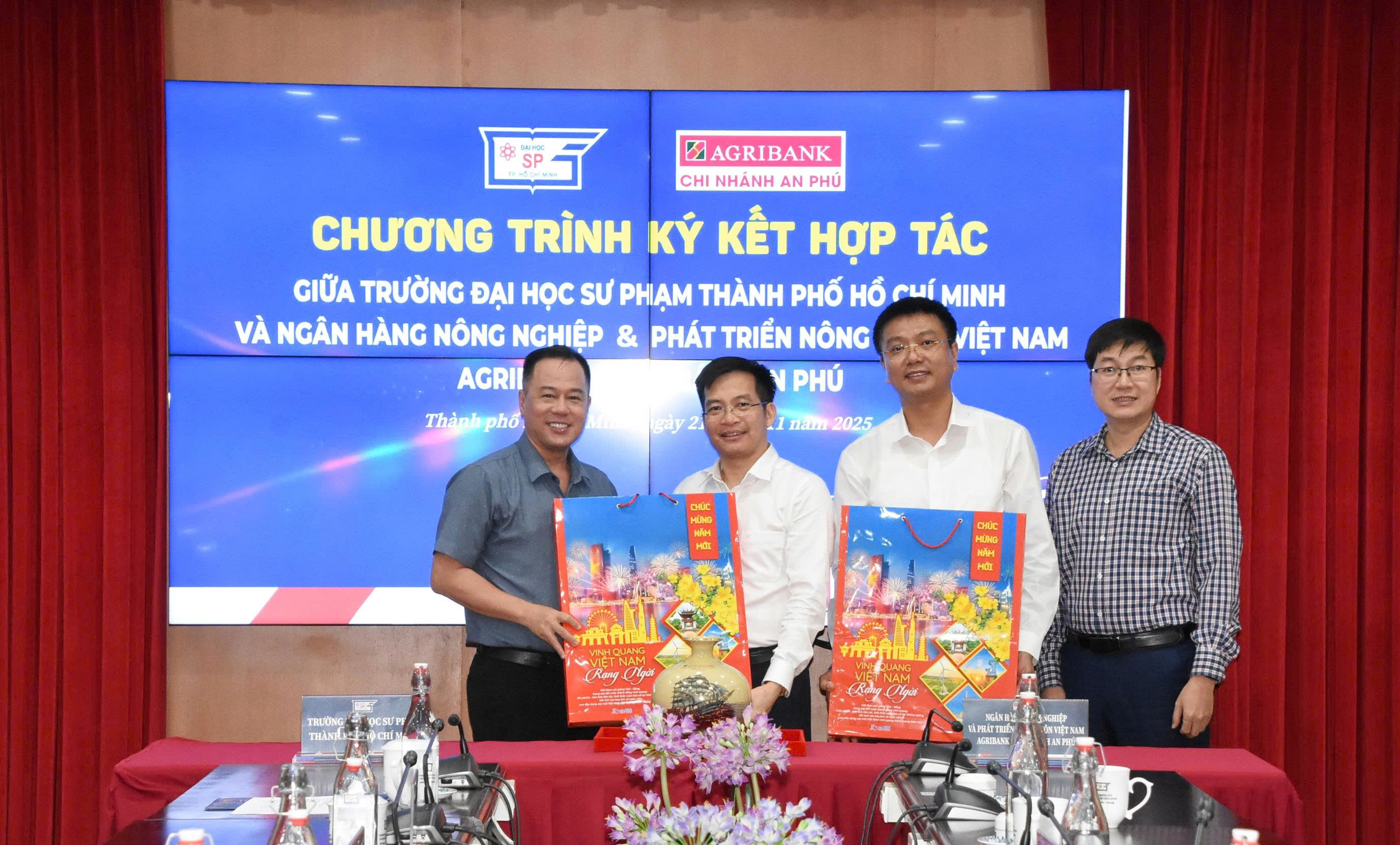 Chiều ngày 21/11/2025, tại Phòng C.207 - Cơ sở 280 An Dương Vương, Trường Đại học Sư phạm Thành phố Hồ Chí Minh đã long trọng tổ chức Lễ ký kết thỏa thuận hợp tác với Ngân hàng Nông nghiệp và Phát triển Nông thôn Việt Nam (Agribank) - Chi nhánh An Phú. Sự kiện đánh dấu bước phát triển mới, tiếp nối những thành quả hợp tác tốt đẹp giữa hai đơn vị trong giai đoạn 2023 - 2025.
